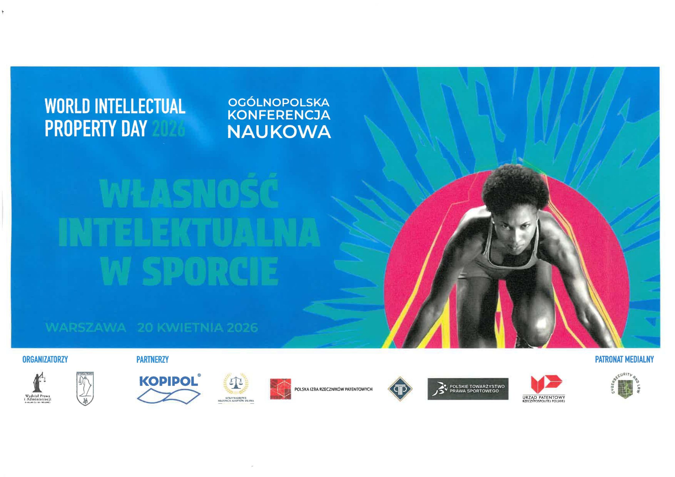 20 kwietnia 2026 r. Akademia Sztuki Wojennej, Katedra Prawa Własności Intelektualnej Wydziału Prawa Uniwersytet w Białymstoku organizują konferencję naukową pt. „Własność intelektualna w sporcie. IP and Sport: Ready, Set, Innovate!”. Wydarzenie wpisuje się w obchody IP Day (Światowego Dnia Własności Intelektualnej) ustanowionego przez Światową Organizację Własności Intelektualnej (WIPO), którego motywem przewodnim w tym roku jest prawo własności intelektualnej i sport.