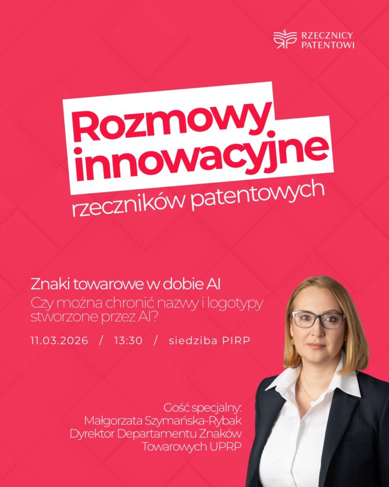Odpowiedzi na te i wiele innych pytań będziemy szukać wspólnie z Małgorzatą Szymańską-Rybak, Dyrektor Departamentu Znaków Towarowych Urząd Patentowy Rzeczypospolitej Polskiej, podczas kolejnego spotkania z cyklu „Rozmowy innowacyjne rzeczników patentowych”.